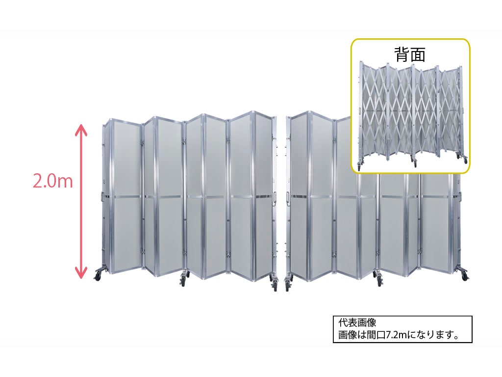 【中古】 アルミクロスゲート 両開き パネル高2.0m 柱高2.0m x 幅7.2m ACW-2P-72
