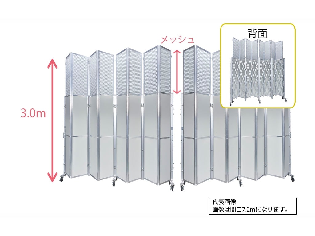 【中古】 アルミクロスゲート 両開き 上部メッシュパネル高3.0m 柱高2.0m x 幅7.2m ACW-3T-72