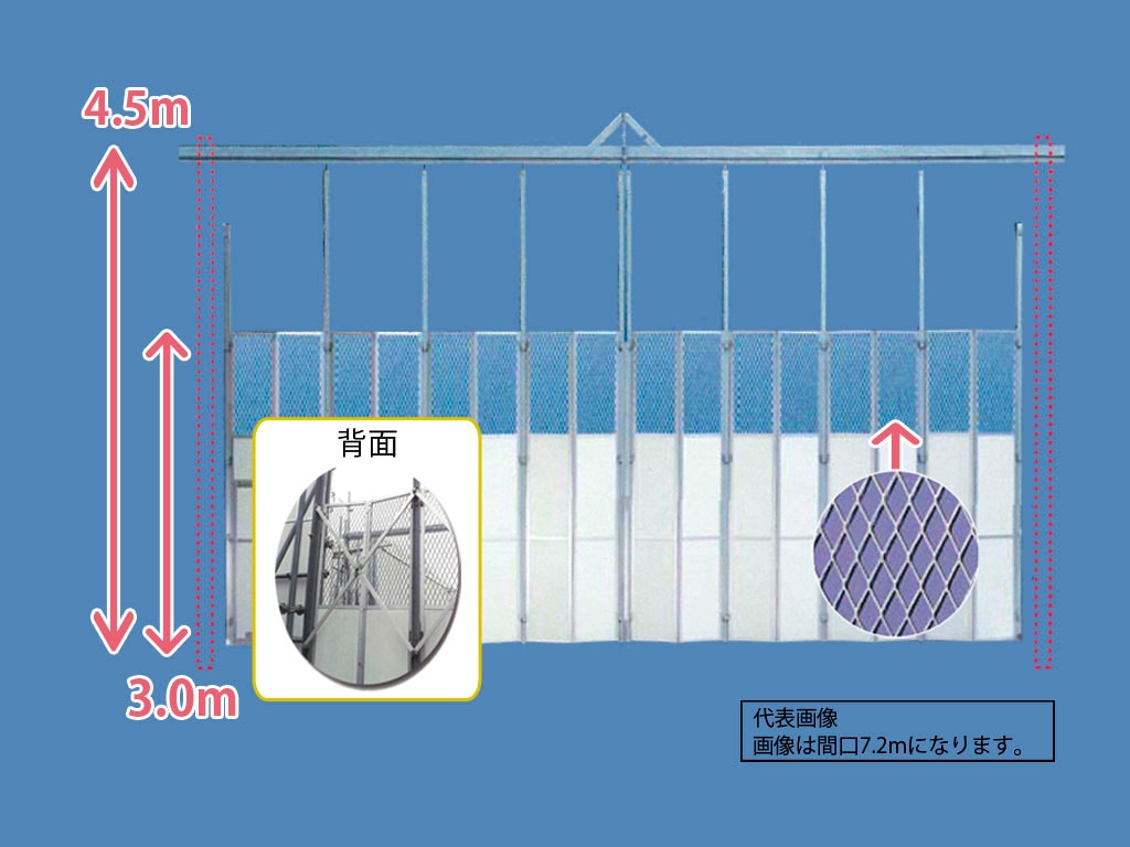 【中古】 門型パネルゲート 全面パネル 高さ 4.5 m 間口 7.2 m 単管取付型(安価型)SG-3P1-72